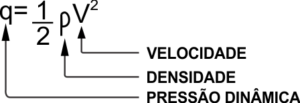 A pressão dinâmica tem uma direção e um sentido. Quanto mais denso for o fluído, maior será a pressão, certo? Sendo pressão = F/A e a força no caso é o próprio fluído, quanto mais fluído, mais força e portanto mais pressão. Fluídos mais densos exercem maior “força” e portanto maior a pressão. Na aula 4 de Teoria de Voo será explicado o Teorema de Bernoulli que diz que quanto maior for a velocidade de escoamento de um fluído, maior será sua pressão dinâmica e menor será sua pressão estática. Conluimos assim que quanto mais velocidade, mais pressão dinâmica. Pressão dinâmica e velocidade de escoamento são grandezas diretamente proporcionais. A dórmula a seguir é a fórmula da Pressão Dinâmica, enxergará com facilidade os fatores que nela influenciam: